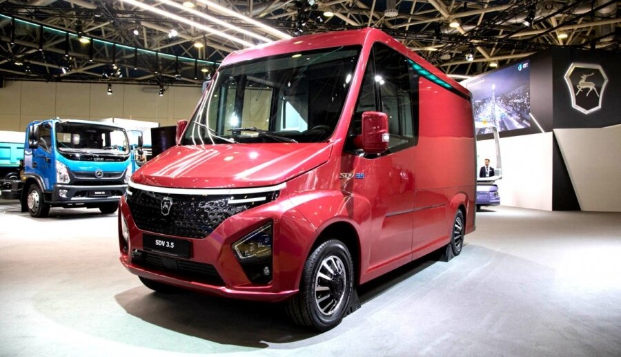 На открывшейся в Москве выставке «Комтранс» был представлен прототип компактного фургона SDV от Горьковского автозавода. Новинка была специально разработана для удобства многочисленных служб доставки и интернет-магазинов. Тут реализован доступ из кабины в грузовой отсек, а задняя часть оснащена роллетной дверью с электроприводом и откидной аппарелью. Внутри расположены стеллажи (при необходимости их можно сложить) и такелажные петли для надежной фиксации груза. Передний модуль ГАЗа SDV имеет такую же конструкцию, как и «Соболь НН», но с обновленным дизайном. Однако, кузов существенно отличается от других коммерческих моделей производителя, поскольку он не имеет рамы. Вместо этого, фургон оснащен несущим кузовом для снижения уровня пола, который составляет всего 30,5 см. Кроме того, данную модель сделали электрической и переднеприводной. Тяговый мотор и батарею для нее использовали от мелкосерийного электромобиля «Газель е-НН». Производитель утверждает, что ГАЗ SDV сможет проехать до 20