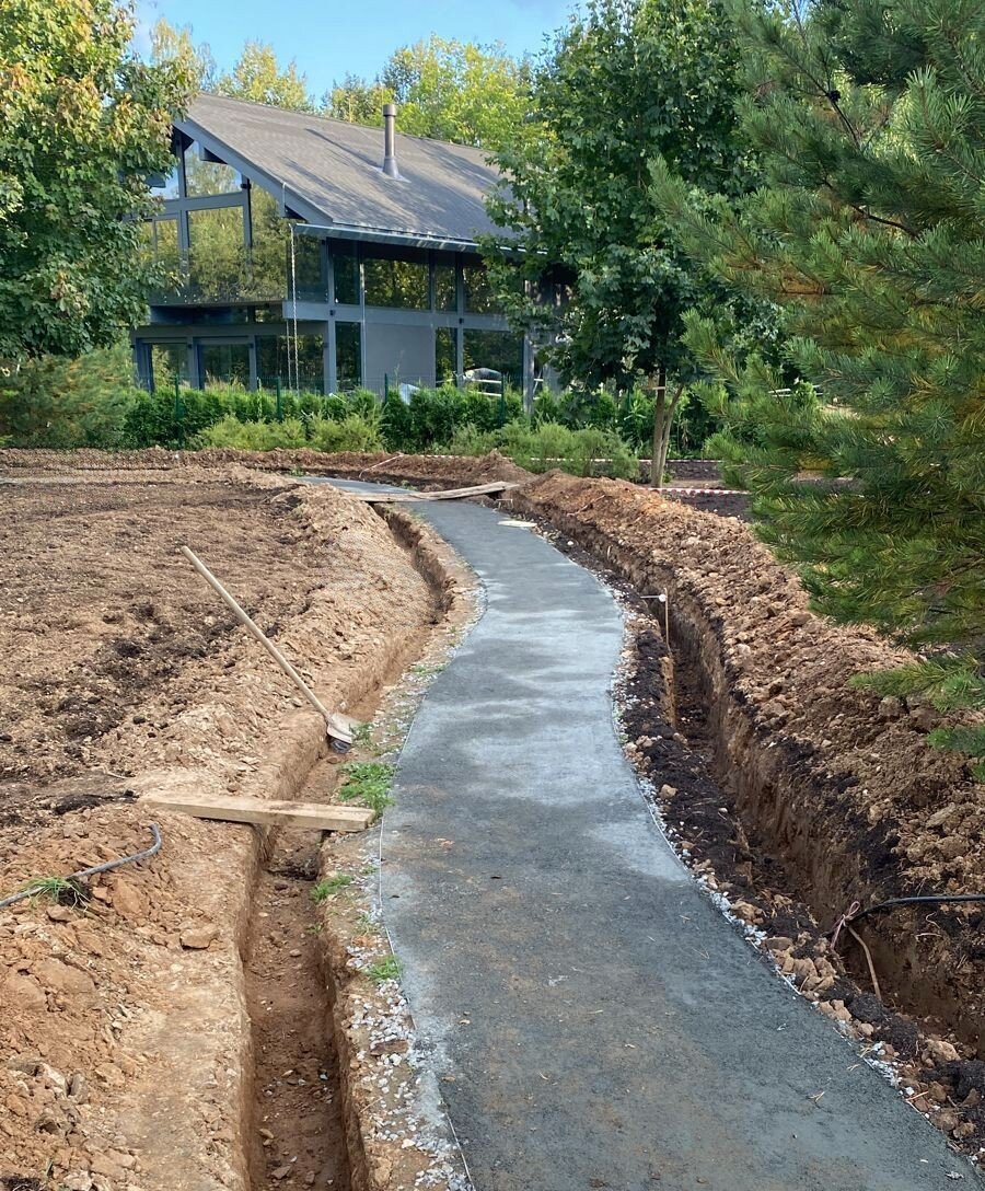 В настоящее время наша команда работает над созданием тропинок на участке, проводит дренажные работы и закладывает коммуникации для освещения. Эти маршруты будут вести к уютному месту, где в скором времени будет организован очаг с круговой бетонной скамьей. Здесь вы сможете разделять истории у костра, наслаждаться горячими напитками, мы уверены, что такие моменты обязательно останутся в вашей памяти навсегда.