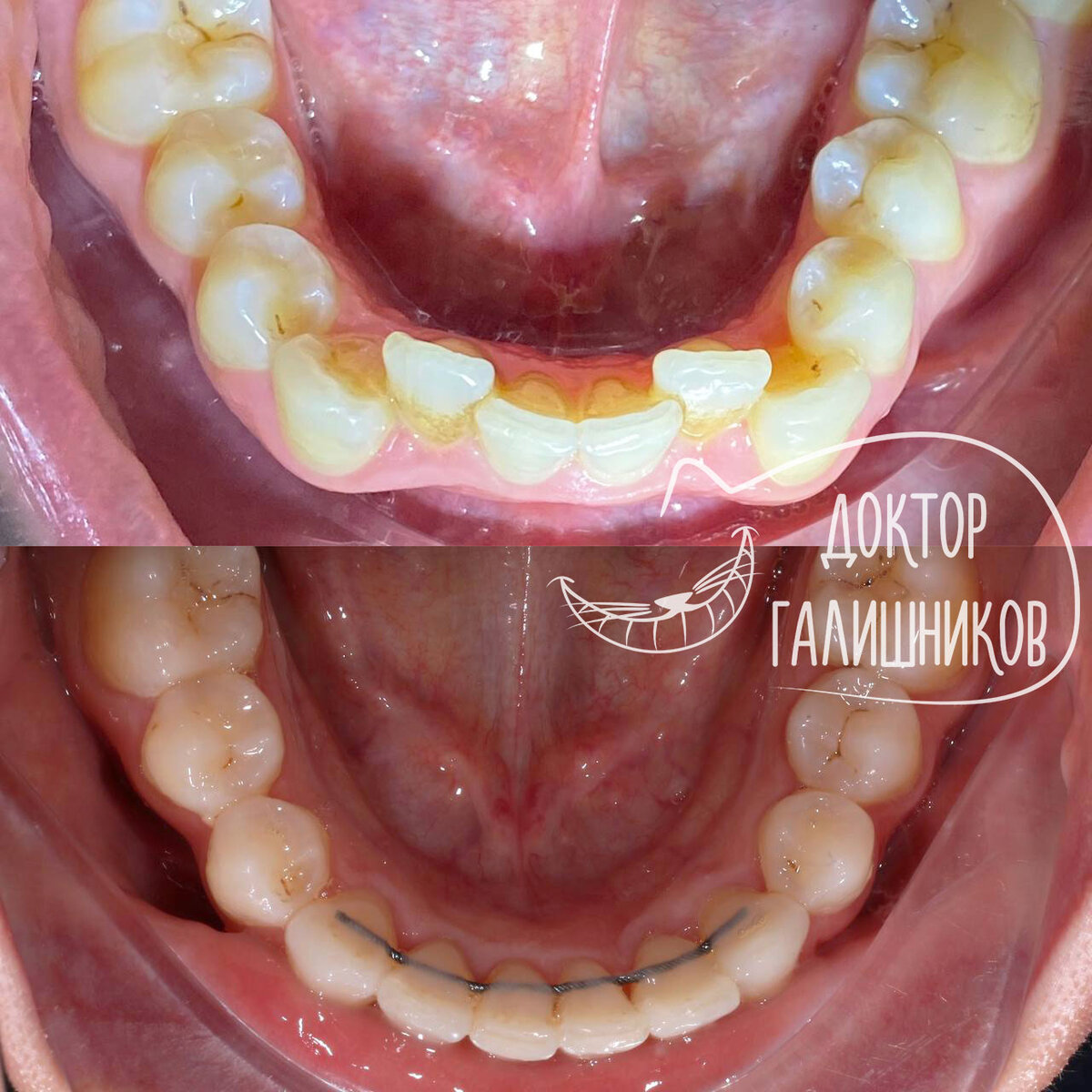 Конечно же, все пациенты ждут, что после ортодонтического лечения результат сохранится на всю жизнь. По сути мы хотим того же, но есть нюансы. Наши зубы в челюсти крепятся на связках, они эластичные и за счёт этого и происходит ортодонтическое лечение. Но после снятия брекетов связки ещё некоторое время остаются мягкими, а значит, у зубов есть все шансы вернуться на своё прежнее положение. Чтобы этого не произошло, ко внутренней стороне зубов мы фиксируем ретейнеры – тонкую проволочку. Она-то и поможет сохранить результат после ортодонтического лечения. На фото – работа нашего ортодонта Анны Константиновны Финк. На снимках видно, как выглядит этот ретейнер. А как вам сама работа? Правда же, здорово получилось? О возможных противопоказаниях проконсультируйтесь со специалистом #галишников #стоматологиямск #стоматологмск #москвастоматология #брекетымосква #ортодонтмосква #исправлениеприкусамосква #выравниваниезубов #симоновплаза #омегаплаза #юаомосква