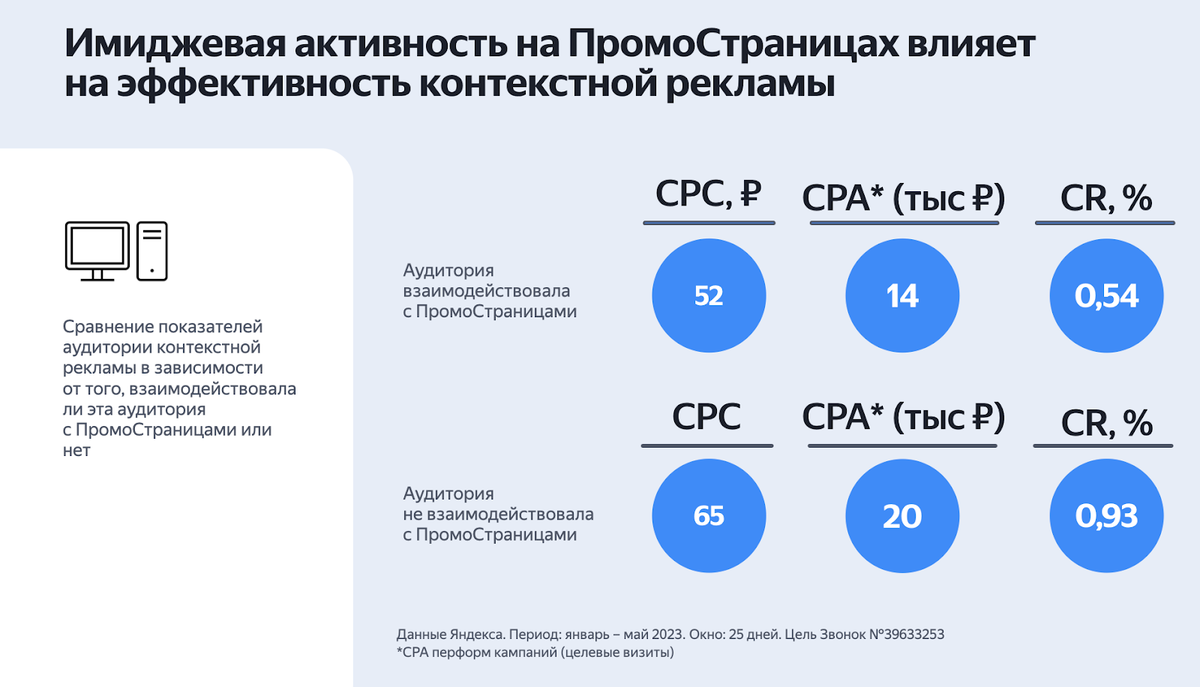 Кроме эффективной работы на имидж, ПромоСтраницы также показывают отличные результаты по конверсиям.