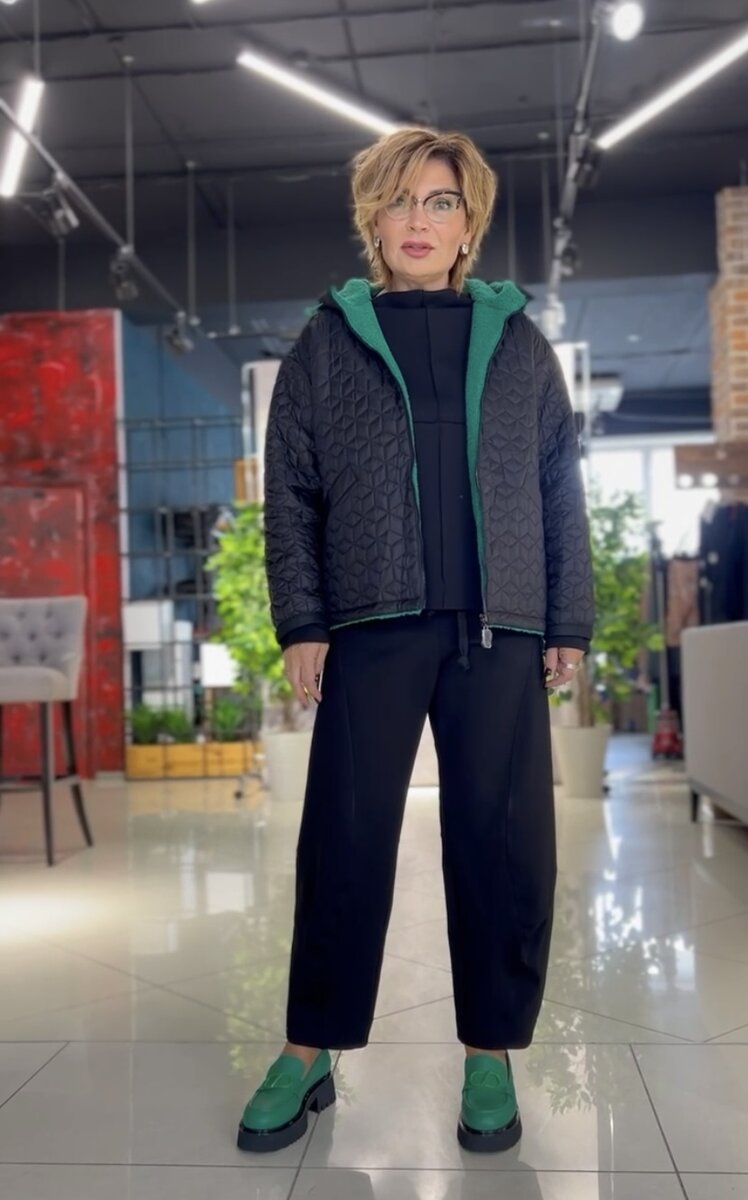 Подкладка в зеленом ярком цвете, ткань утепленная, в такой куртке точно холодно не будет.