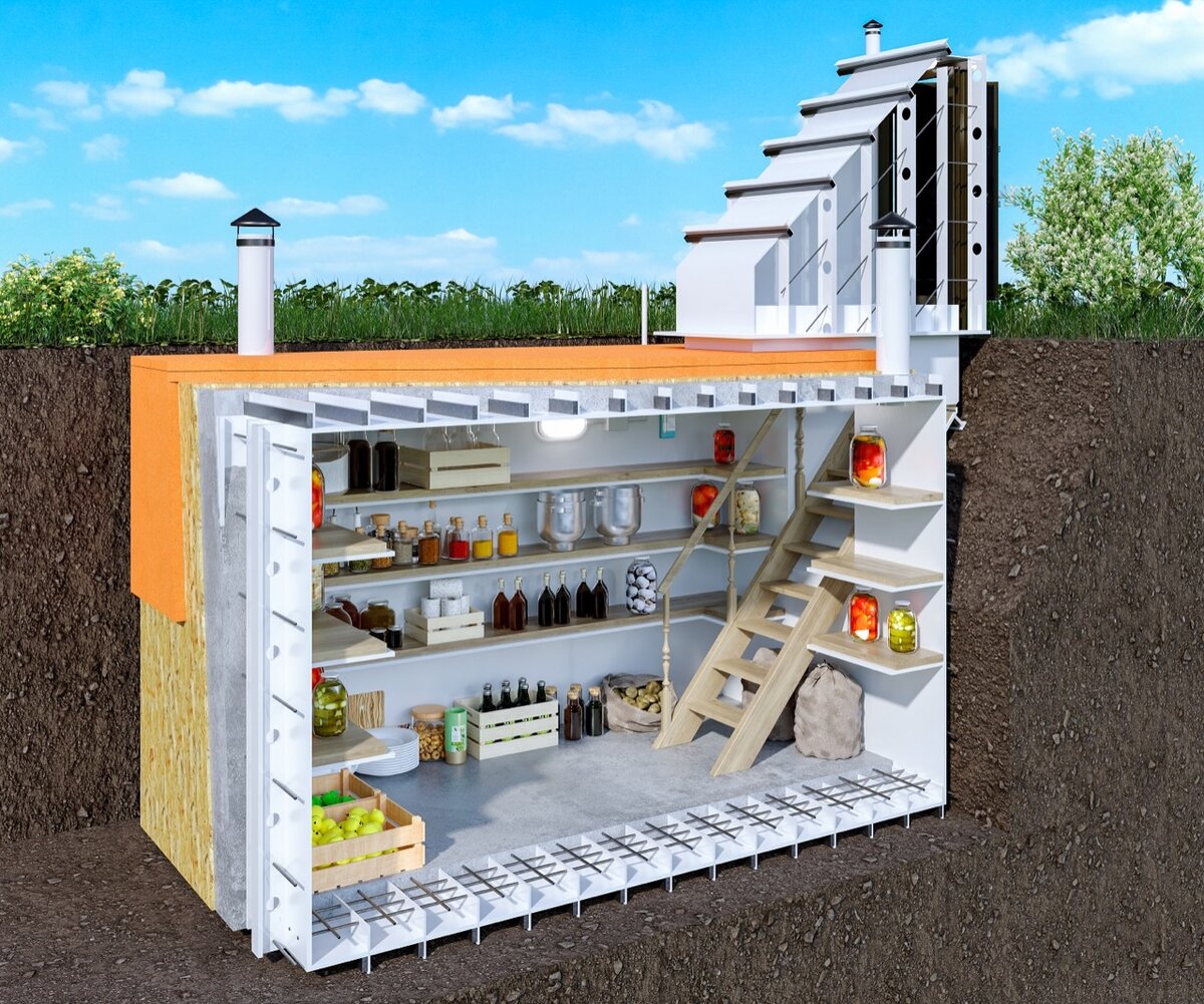 - Готовые погреба обычно уже имеют вентиляцию, однако, если планируется хранить “очень много всего”, потребуется ее доработка. Это может быть дополнительной платной опцией, которую следует обсудить с производителем.