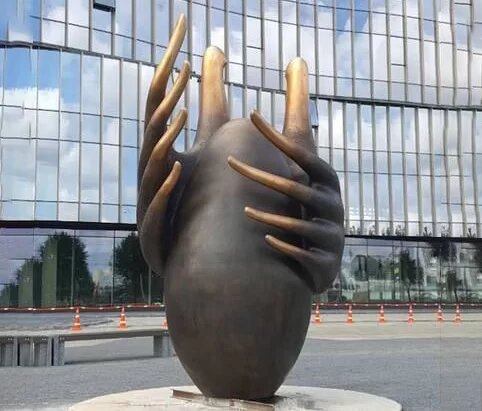 Скульптуру «Птицы», автор которой – уроженец Минска Максим Петруль, еще в 2018 г. выставили во Дворце Независимости. Здесь организовали постоянную экспозицию работ белорусских скульпторов, чтобы популяризировать отечественное искусство в целом. Теперь подобная фигура установлена неподалеку на пр. Победителей, где построили новое здание со стеклянным фасадом. Поясняется, что в работе — три пластических объема. Центральный имеет овоидную форму. Он символизирует начало и продолжение, будущее, а также Землю. Все это оберегают две руки-птицы. Скульптура также отсылает к теме доброй и мирной Беларуси. Фото из Telegram-канала «Пул Первого» Смотрите также: