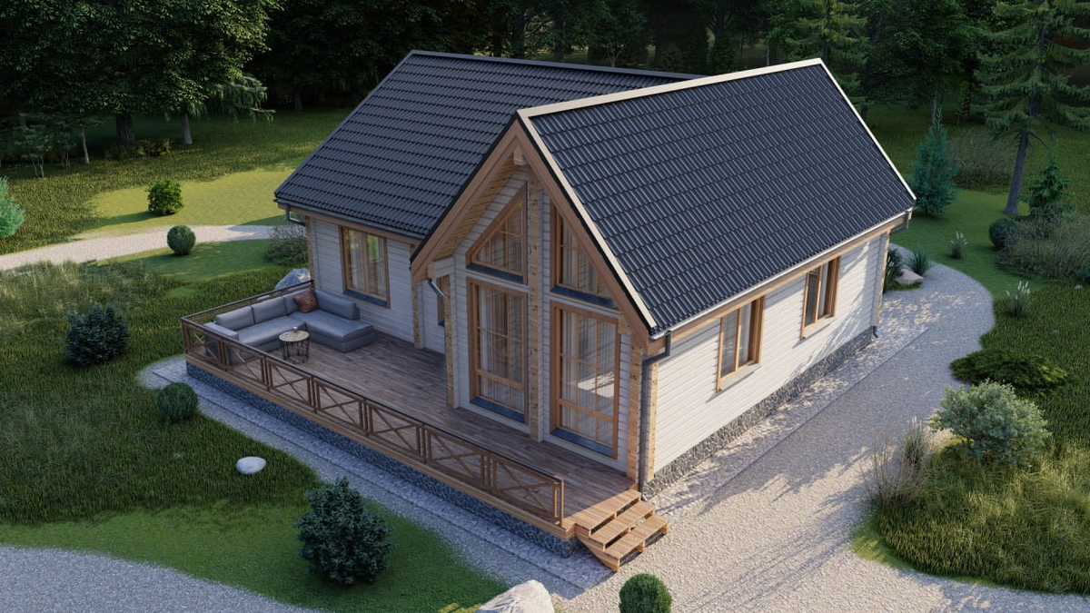 Проект «Бавария» — просторный загородный дом из клеёного бруса площадью 148 м² для счастливой жизни небольшой семьи из 3-4 человек.