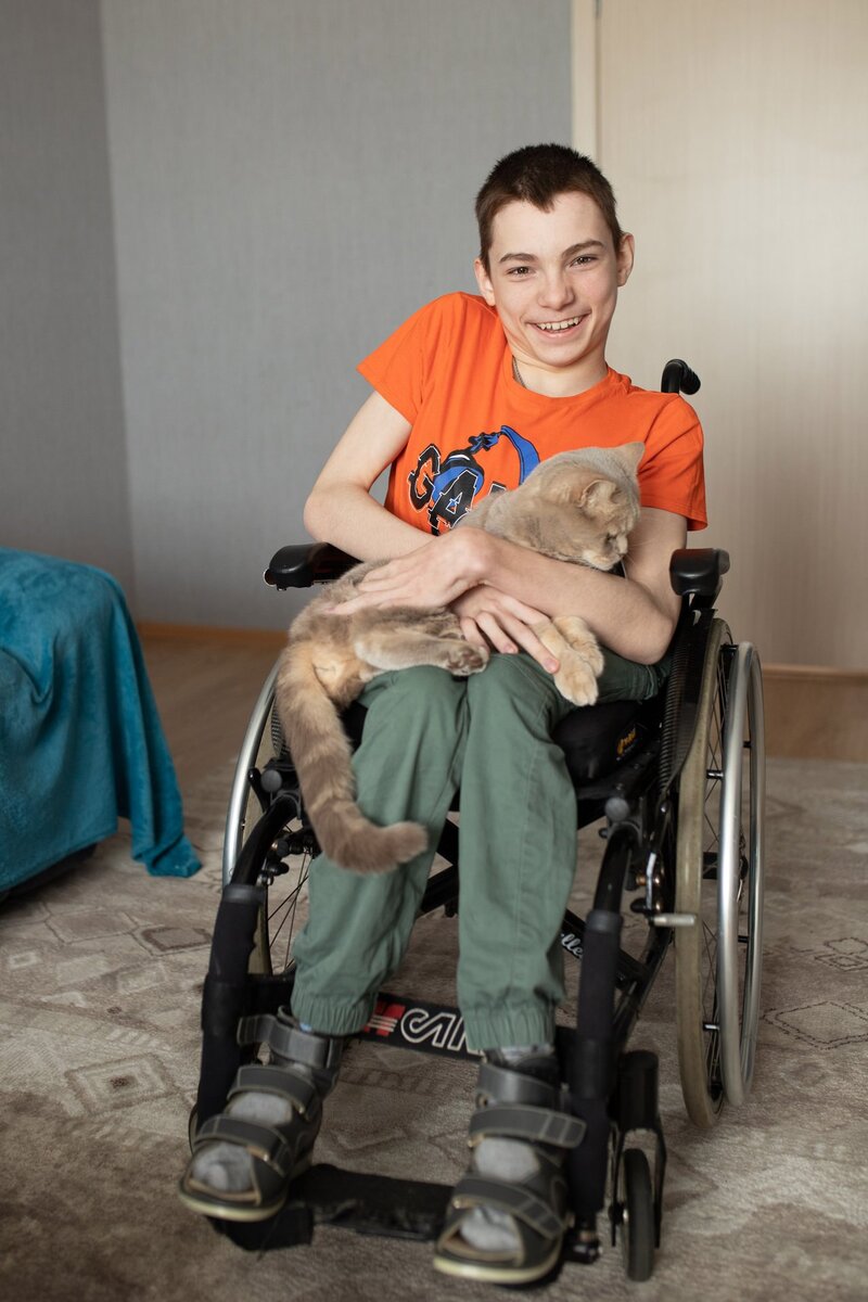 В семье мальчика он появился 2 года назад. Его подарила старшая сестра Лёши на день рождения мамы. При том, что никто не собирался заводить кота, он нашел своё место в семье и теперь является её важным членом. Из котенка вырос очень добрый кот, он играет и с Лёшей, и с его младшим братом Родионом. Они любят играть в "догонялки" - Родион бегает, а кот - следом за ним. Иногда котика нужно помыть, и тогда участвует вся семья. Папа держит Босю, а остальные помогают, Лёша сидит в коляске и смеётся. Самое удивительное, что кот не царапается и не кусается. Совсем скоро у Лёши ожидается сложнейшая двенадцатичасовая операция на позвоночник, она должна исправить сколиоз, убрать боли в спине. И Бося очень радует мальчика в такой сложный момент, отвлекает от грустных мыслей, так как переживают все. Два фонда помогают собрать средства на операцию. Наш фонд открыл сбор на специальную индивидуальную коляску для Лёши, она понадобится после операции для реабилитации. Вместе мы сможем сделать много