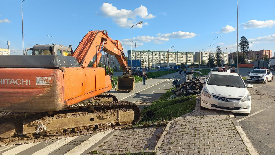 На Урале потерявший сознание водитель экскаватора вылетел на дорогу и врезался в автомобили