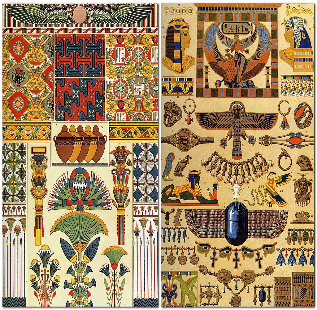 Нанесение узоров по трафарету использовались такими великими цивилизациями, как египетская и греческая. Трафаретами пользовались в древнем Египте 2500 лет до н. э. для получения изображений при украшении стен гробниц и футляров для мумий, росписи керамики и других предметов.