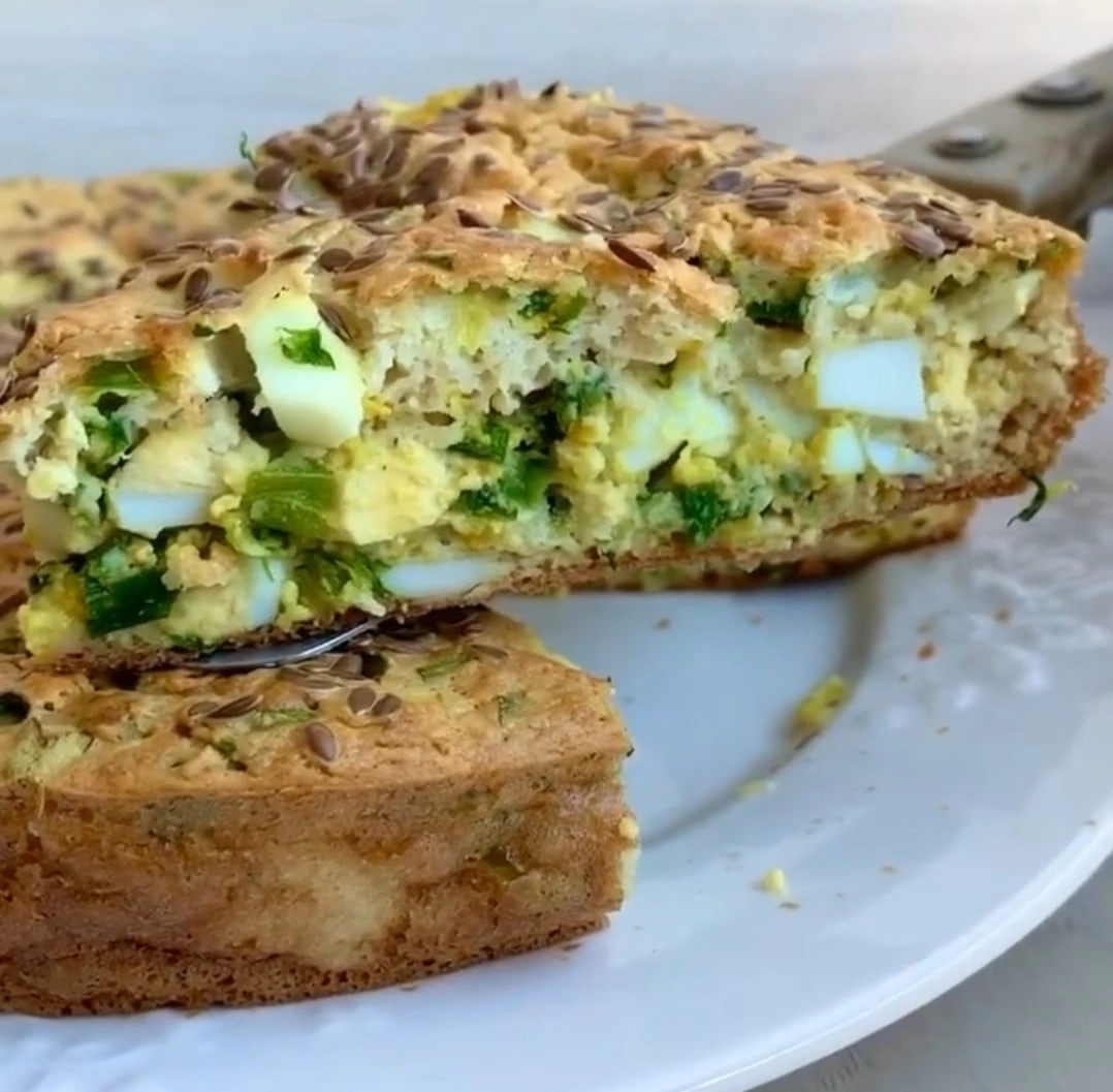 ЗАЛИВНОЙ ПИРОГ С ЗЕЛЁНЫМ ЛУКОМ И ЯЙЦОМ