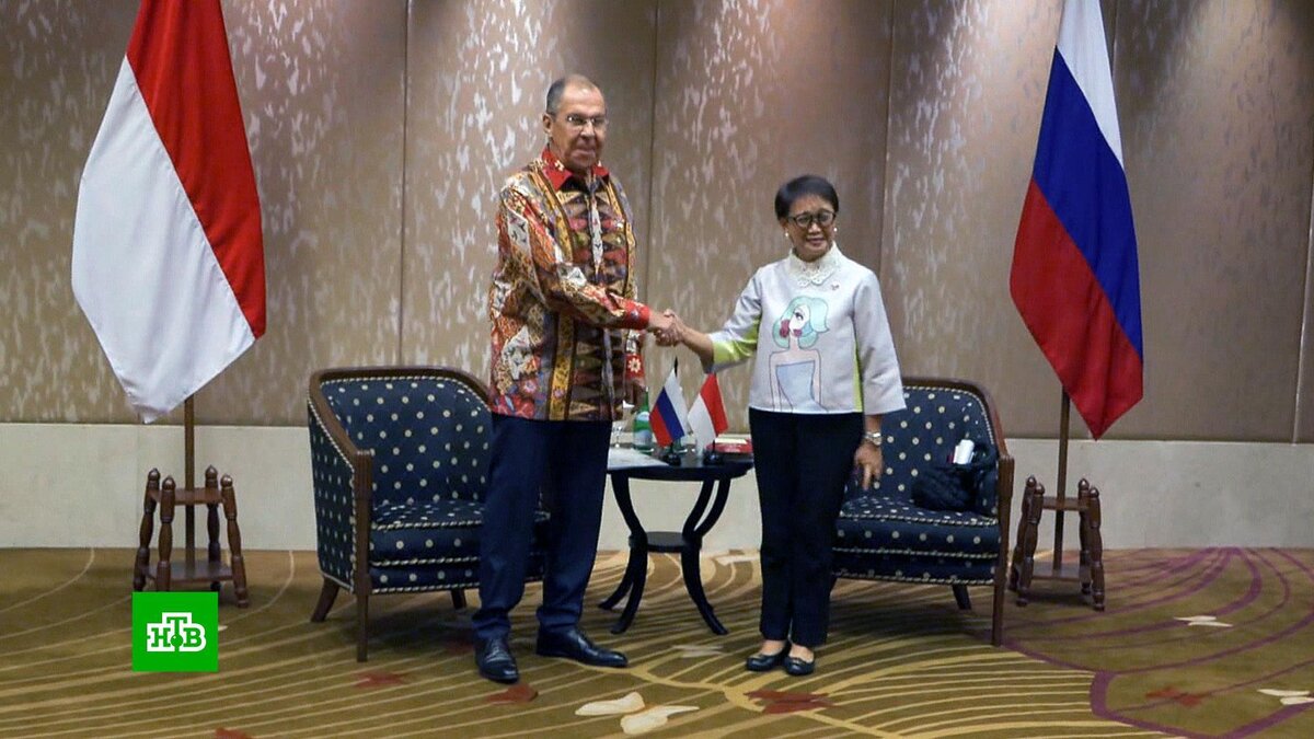 [ Смотреть видео на сайте НТВ ] Глава МИД России принял участие в работе Восточноазиатского саммита в Индонезии. В аэропорту Джакарты Сергея Лаврова встречали танцующие девушки в национальных костюмах. И азиатский колорит не исчез с началом рабочей программы. Для переговоров с главой индонезийской дипломатии Ретно Марсуди глава МИД России надел традиционную рубашку из батика. Здороваясь, Лавров поинтересовался, не Барби ли изображена на ее блузке. На что Марсуди ответила, что это она сама. Самым красочным мероприятием форума стал гала-ужин от имени президента Индонезии Джоко Видодо. Роскошный банкет для глав делегаций устроили под открытым небом. За столом Лавров оказался рядом с генеральным секретарем ООН Антонио Гутерришем, поэтому у них была возможность обсудить не только поданные блюда, но и важные политические вопросы. [ Смотреть видео на сайте НТВ ]