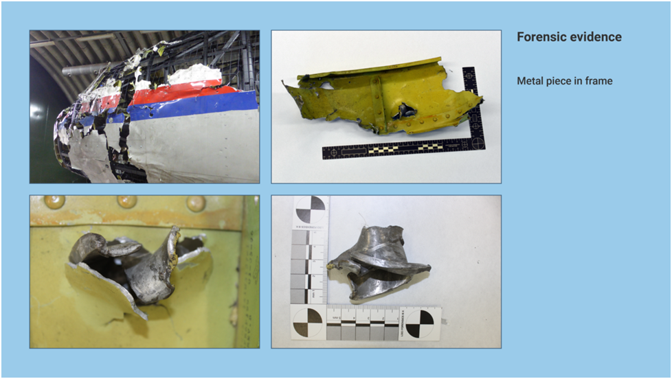 Во-первых, это связано с тем, что ракета “Бук” стабилизирована по двум осям (двум координатам), в связи с чем основная пластина находится в нижней части ракеты. Из-за этого она не была направлена в ту точку, где, по мнению экспертов RMA и NLR должен был находиться самолёт во время взрыва.Во вторых, потому, что угол, под которым заглушка влетел бы в раму иллюминатора, не соответствует месту подрыва.