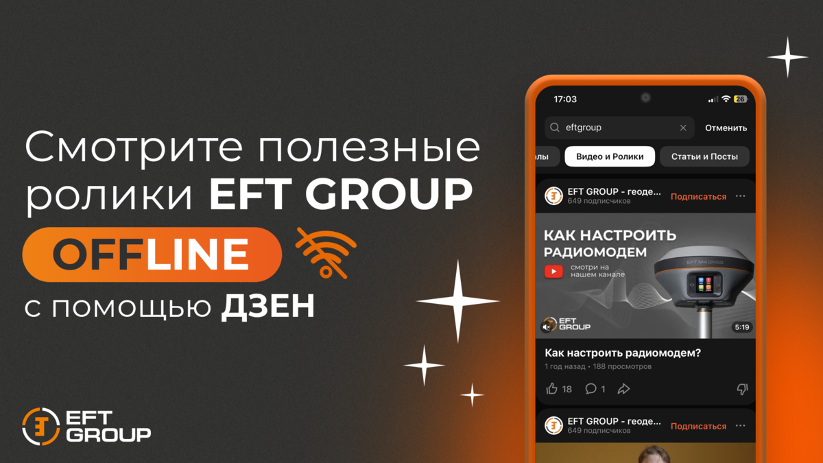 В нашем быстро меняющемся мире доступ к информации становится все более важным. И вот отличная новость для всех, кто ценит качественные и полезные ролики на тему геодезии: платформа Дзен объявила о новой функции, позволяющей сохранять видео для просмотра в офлайне! Для тех, кто часто находится в дороге или в местах с ограниченным доступом к интернету, такая функция станет настоящим спасением. Представьте себе: вы в пути, связи нет, а развлечь себя или узнать что-то новое хочется. И тут на помощь приходят ролики EFT GROUP с полезными советами и лайфхаками в области геодезии. Это не просто развлечение, это возможность обогатить свои знания и узнать множество новых вещей. Вот короткий гайд как это сделать: 1 - Заходим в Дзен и находим наш канал EFT GROUP 2 - Подписываемся на наш канал))) 3 - Переходим в раздел «видео» или в плейлист с подборкой, например «Учимся работать с тахеометром» 4 - Находим нужный ролик и открываем его 5 - Нажимаем «скачать» (кнопка под видео) в нужном для вас кач