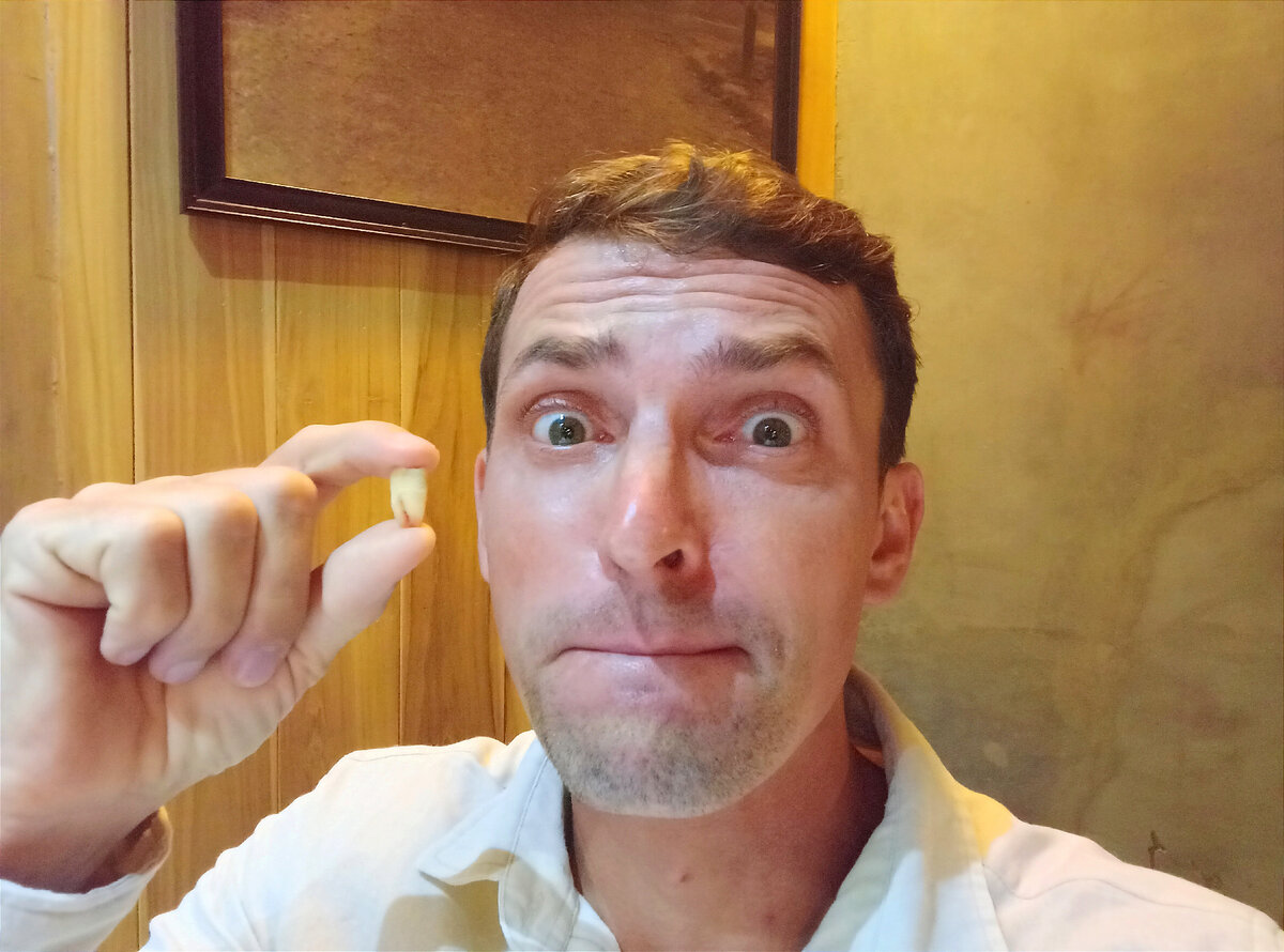 Вчера я распрощался со своим верным другом, который исправно служил мне на протяжении более тридцати лет. Ну как распрощался, завернул в тряпочку и положил в карман рюкзака. Выбрасывать жалко. В общем, мне вырвали зуб. Ситуация была весьма запущенная, так что решение было однозначным - удаление. Вариантов, куда пойти, было несколько. Во-первых в государственную поликлинику, отсидеть в очереди с местными бабушками и попасть на приём, условно, бесплатно или за дёшево. Вторым вариантом было обратиться в частную клинику с современным оборудованием и повышенным уровнем комфорта и заботы (?), но уже за совсем другие деньги. В общем-то так же, как и у нас в России. Я выбрал второй вариант. Днём записался по телефону, вечером пришёл на приём. В результате всё прошло быстро и безболезненно. Что понравилось: бесплатный первичный осмотр, идеальная чистота, действительно современное оборудование, которого я лично ещё не видел в Российских зубных клиниках, ну и ожидаемая забота со стороны персонал