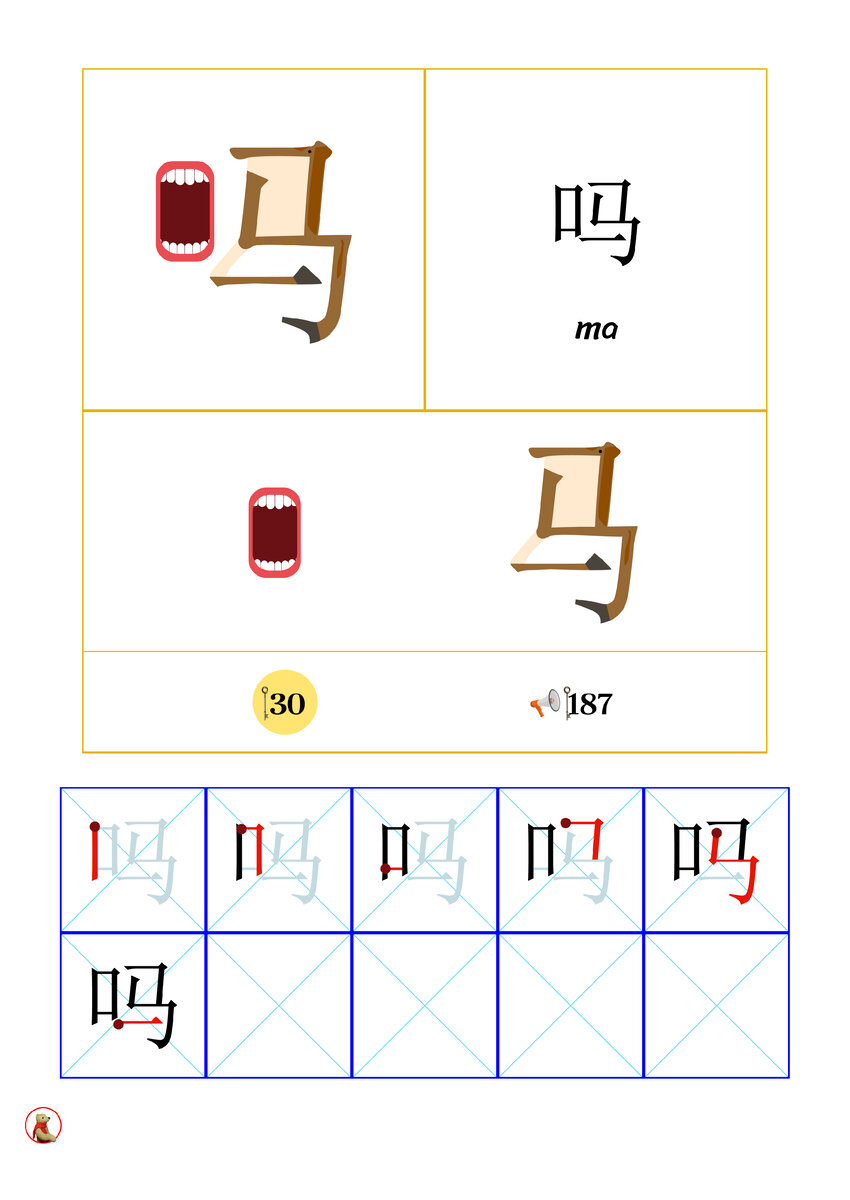 Иероглиф 吗 ma - сложный иероглиф с горизонтальной структурой, произносится пятым или нейтральным тоном.