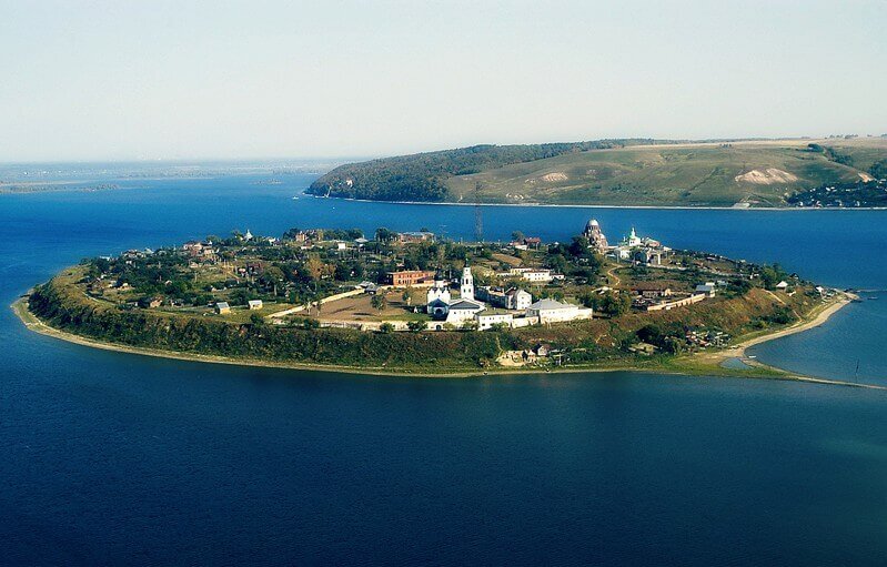 Основные данные: Крепость Свияжск появилась на карте около 500 лет назад. Город был построен всего за 1 месяц и его раннее название — Ивангород (по имени царя Ивана Грозного). Это наименование не прижилось, город-крепость стали именовать Свияжск. Остров сыграл ключевую роль в осаде Казани в середине XVI века. В довоенный период эта земля стала одним из первых мест для советских политических репрессий. Куйбышевское водохранилище наполнили в 1957 году, после чего Свияжск превратился в остров. Только в 2011 году, после появления очередной насыпной дамбы, на этот раз более надежной, поселок соединился с «большой землей» полноценной автодорогой. Сегодня здесь проживает не более 250 человек, в то время, как еще 100 лет назад, местных жителей было в 10 раз больше. День города тут отмечается 24 мая. Примите к сведению: советский писатель В.П. Аксенов, который провел на острове все свое детство, посвятил Свияжску отдельную одноименную повесть.