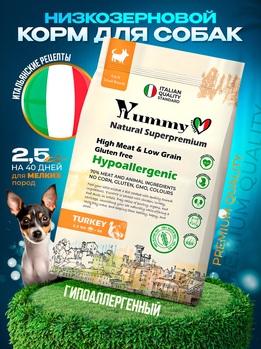 Yummy Linea Сухой корм для взрослых собак мелких пород Индейка 2,5 кг