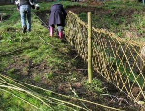 Кстати формировать рисунок на изгороди или беседке можно не только с помощью подвязки саженцев, но и тонкими прутиками самой ивы.