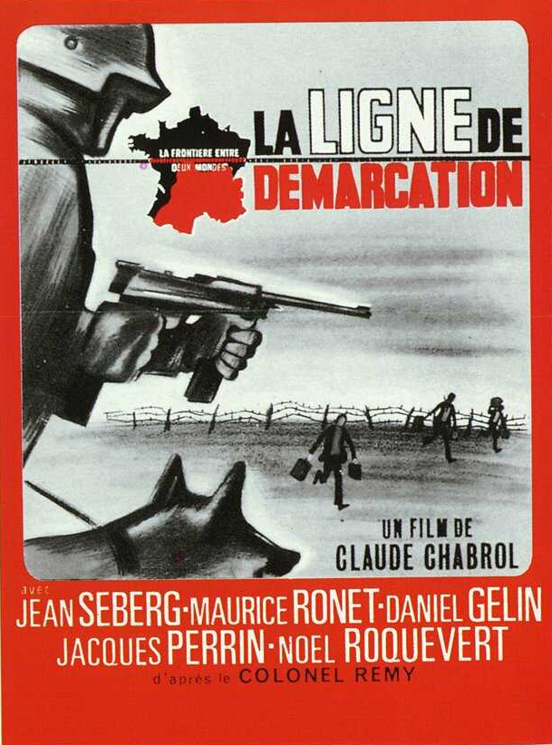 Демаркационная линия / La Ligne de démarcation. Франция-Италия, 1966. Режиссер и сценарист Клод Шаброль (по роману полковника Реми / Жильбера Рено). Оператор Жан Рабье. Актеры: Джин Сиберг, Морис Роне, Даниэль Желен, Райнхард Кольдехофф, Жан Янн, Жак Перрен, Клод Левейе, Жан-Луи Мори, Поль Жегофф, Стефан Одран и др. Премьера: 25 мая 1966. 1,4 млн. зрителей (Франция). Начало 1940-х. Демаркационная линия отделяет во Франции так называемую южную «свободную зону» от оккупированной центрально-северной части… Бывший капитан французской армии, граф Пьер де Дамвиль (Морис Роне), после немецкого плена возвращается к себе в имение, в деревню, которая расположена как раз на этой самой демаркационной линии… Всё бы ничего, да именно в это время немцы повсюду ищут двух парашютистов, сброшенных с британского самолета… В этой драме Клод Шаброль (1930-2010) обратился к болезненной для французов оккупационной теме и показал сложную ситуацию морального выбора. Роль жены графа Пьера де Дамвиля досталась в