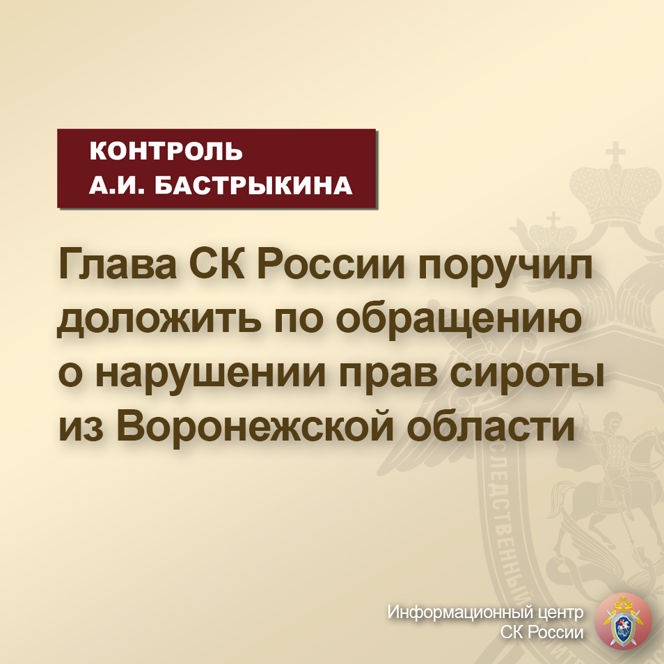 Глава СК России поручил доложить по обращению о нарушении прав сироты из Воронежской области