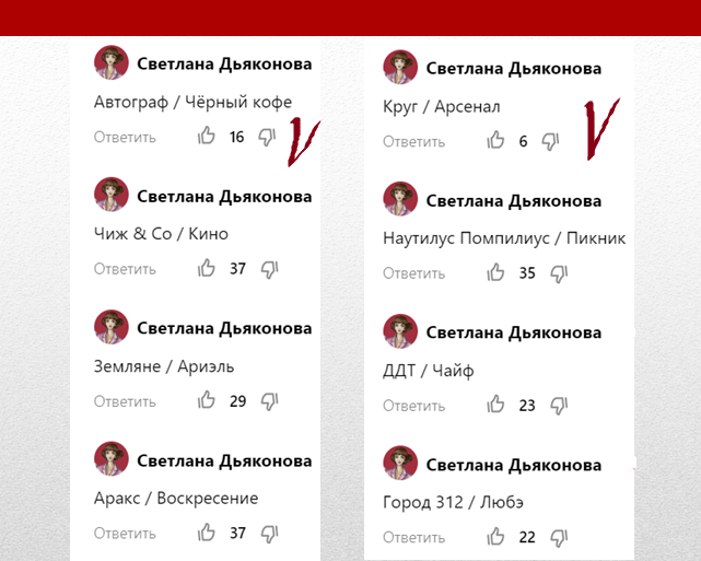 Здравствуйте! Наш проект об отечественных рок-группах подходит к завершению. Совсем скоро мы узнаем, какую из групп читатели канала назовут самой любимой. Групп изначально было 61, осталось 12 коллективов. Сегодня мы наконец-то будем голосовать отдельно за каждый из них. Посмотрим, какие команды покинут нас на этом этапе: Их названия выделены на классной доске жёлтым цветом. Торжественно представляем рок-группы и их произведения, которые любим. Автограф Сан Саныч: "Автограф". Думаю, что их помнят многие. Группа создана Александром Ситковецким в 1979 году. Очень сильно прозвучали на "Тбилиси-80", в то время у нас мало кто так играл. У ансамбля преобладали инструментальные композиции, ярко выделялся своей гитарой Ситковецкий, а в песнях основной упор всегда делали на актуальные тогда тексты. Отличались высокой исполнительской культурой. На "Мелодии" вышли два их диска-гиганта. Поездив по стране, по миру, в начале 1990 Ситковецкий распустил ансамбль, а жаль... В 2005 году он приезж