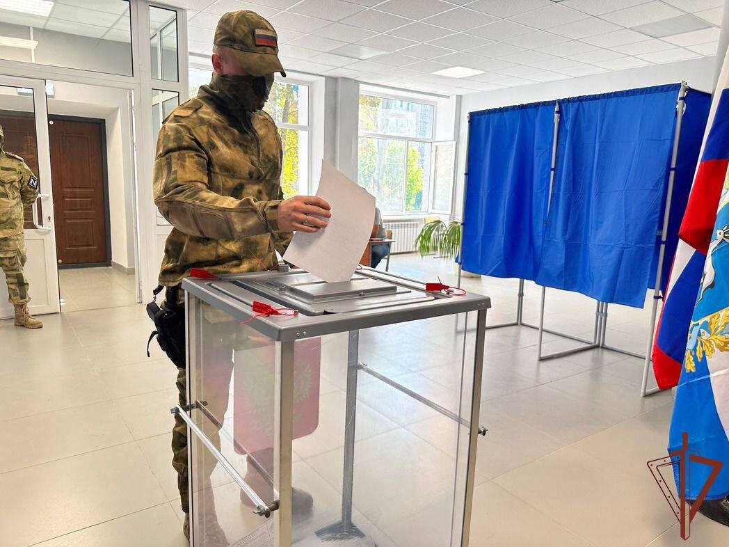 Военнослужащие и сотрудники Росгвардии, выполняющие задачи специальной военной операции на территории Донецкой Народной Республики, приняли участие в выборах органов власти регионов дислокации своих подразделений и воинских частей.