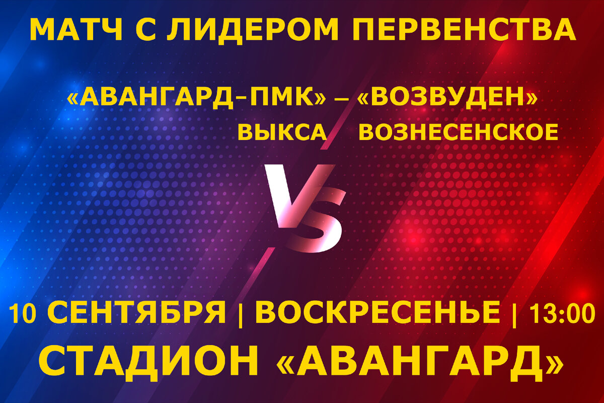 В воскресенье, 10 сентября, «Авангард-ПМК» сыграет с лидером первенства южных районов Нижегородской области — вознесенским «ВозВуденом». Матч состоится на стадионе «Авангард» и начнётся в 13:00.