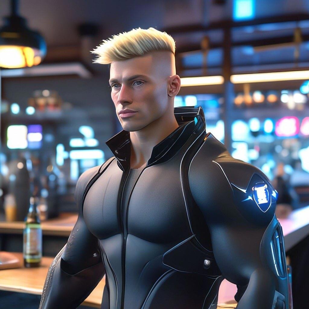 Обернувшись, я задрал голову вверх — рядом стоял гигант. Если Кремень был просто широким и крепким, то этот обладал куда более внушительными пропорциями — три меня в объеме и сантиметров на тридцать вверх от моей макушки. Черный футуристического вида комбинезон обтягивал, его мощную, мускулистую фигуру как перчатка. Короткий ежик волос, скуластое лицо и тяжелые надбровные дуги… И как я прежде не заметил эту махину? В бар вроде никто не заходил... "Скала" надомной шевельнулась протягивая руку. Впору испугаться, но добродушное выражение лица, голливудская улыбка и смеющиеся темные глаза, кардинально меняли образ этого человека. Невольно улыбнулся в ответ. — Здорова! Я Кэп — зовут меня так, — представился здоровяк. Я встал инстинктивно пожимая его лапищу — как будто с каменной статуей поздоровался. — Егор… То есть Вайп. — Ты прости молодой, подслушал я ваш разговор краем уха, — извиняющимся, но веселым голосом начал он, — Пока чудик говорил по делу, мне лично пофигу было. Помочь "монеточ