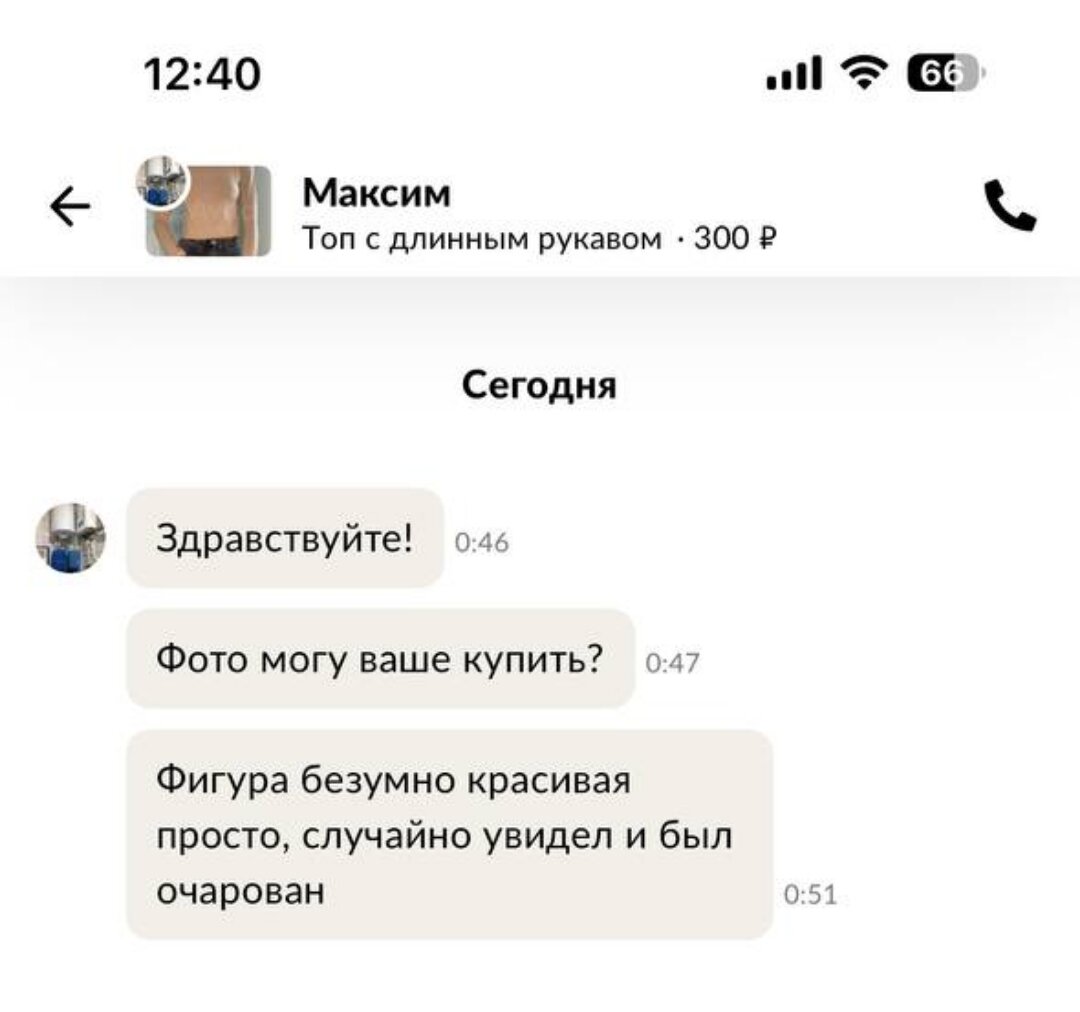 А теперь подробнее: Коллега по работе, молодая девушка Маргарита, решила на своих выходных перебрать старые вещи, и всё, что уже не носит, но хорошего качества, выставить на сайт бесплатных объявлений АВИТО. Сделав несколько снимков в продаваемой одежде, и пару видео, на которых просто поворачивается в разные стороны, дабы покупателям было понятно, как сидит товар, Рита не ожидала того, что её просто завалят сообщениями. Вот только совсем не о покупке. - И таких ещё куча! А главное, я даже лицо свое не снимала! - комментирует Маргорита, маты пропустим. И вроде бы не весна. Что заставляет мужчин накидываться на девушку, которая просто решила продать старый топ, даже не видя её лица? Почему они тусуются на АВИТО? Неужели закрытие ТИНДЕРА настолько повлияло на население? Вопросы, на которые мы никогда не получим ответа.