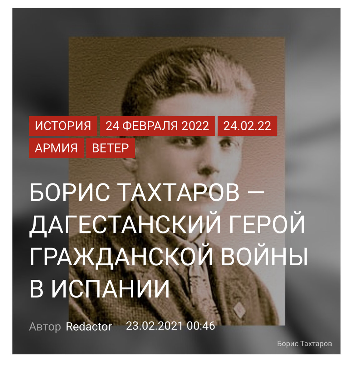 Стоит особо отметить, что Борис Адильгереевич Тахтаров — первый и единственный (в 1930-е гг.) летчик из Дагестана и единственный (из Дагестана) участник национально-революционной войны в Испании 1936-1939 гг., одним из первых из дагестанцев награжденный орденом боевого Красного Знамени.