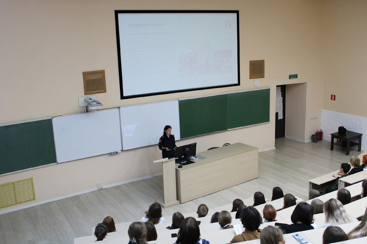 Офицер поведала студентам о первом командующим внутренней стражи генерал-адъютанте Егоре Евграфовиче Комаровском. Отдельно остановилась на подвигах и героизме войск НКВД в годы Великой Отечественной во
