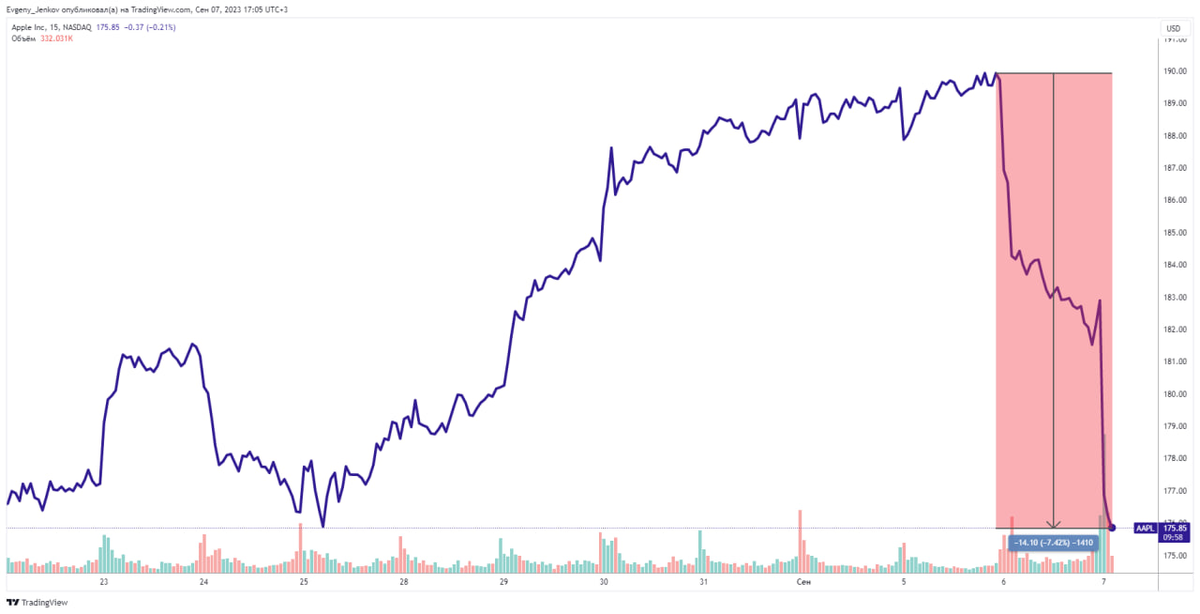 Акции Apple переживают непростой период. Акции яблочного гиганта рискуют потерять$212 миллиардов рыночной стоимости всего за два дня. Основная причина — новости о том, что китайским чиновникам запрещено пользоваться iPhone.