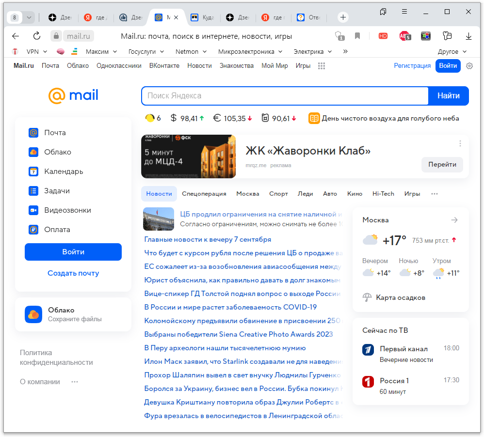 Кстати, ранее говорили, что статьи Дзена крутятся на портале Mail.ru. Зашёл, посмотрел — ничего там не крутится, только новости.