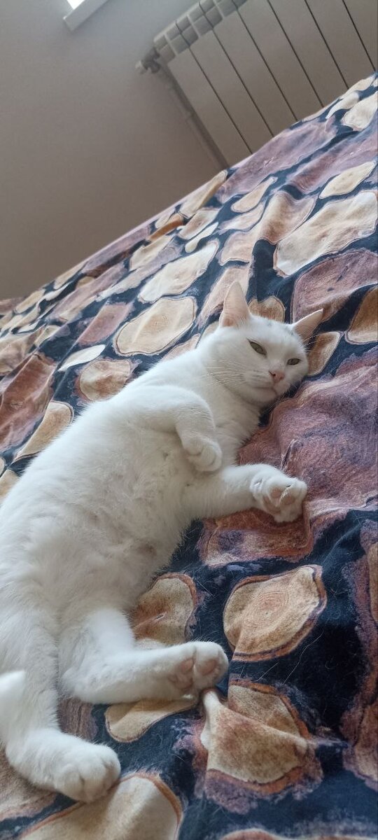 Снежка уже какой день приходит и не даёт мне в комнате есть. Ну это ещё ладно, привыкла за много лет жизни с котами, что еда в этом доме им принадлежит , а не тебе, но так, что мне ещё и спать не дают, такое впервые. Обычно взрослые котики просто ложатся рядом с тобой и спят, но Снежинка придавливает меня своим весом и не даёт пошевелиться, да это и невозможно. Не снежинка, облако целое!