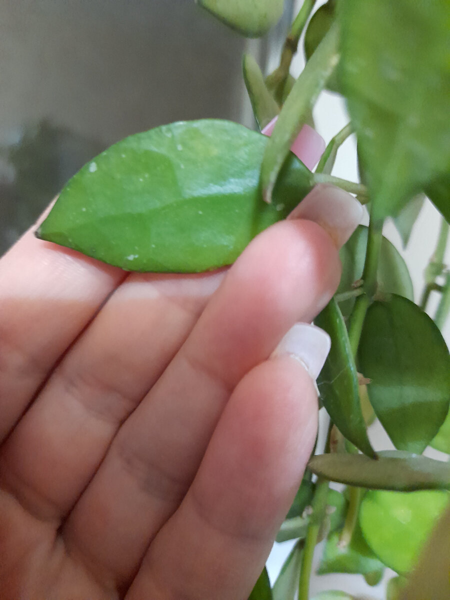 2. Размер листиков. Ну этот параметр я связываю только лишь с питанием/удобрениями. Иногда я поливаю все свои хойи удобрением для томатов. В нем просто "лошадиная " доза азота ( да и фосфора с калием тоже) и после этого удобрения лакуноза ( как и все мои хойи) выдаёт нетипичные для неё огромные листья. Мне, конечно же, это не особо понравилось, не хочу, чтобы хойя теряла сортовые признаки, ведь именно в этих мелких сердцевидных листочках её очарование! Поэтому удобрением для томатов её больше не кормлю( использую его для крупнолистных хой) да и другие удобрения для неё разбавляю в несколько раз. Вот здесь можно увидеть разницу до и после удобрения для томатов.
