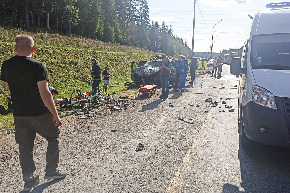 Фура врезалась в группу велосипедисток. Отец одной из пострадавших в ДТП на трассе «Скандинавия» девочек Владимир Голыбин рассказал об аварии. В четверг в Ленинградской области на трассе «Скандинавия» произошла авария, в которой погибли две велосипедистки, а другие семь девочек и их тренер пострадали. По словам Голыбина, в момент аварии дети находились на тренировке. Он рассказал «360», что его дочь Ирина сейчас в безопасности и ее состояние стабильное. Он также отметил, что во время происшествия его дочь находилась впереди колонны спортсменок. Голыбин рассказал, что неизвестный автомобиль на высокой скорости столкнулся с машиной тренера. Велосипедистка сначала услышала странный звук, а затем упала на обочину. В ужасе она отползла в сторону, пытаясь успокоиться после увиденного. Ранее сообщалось, что член комитета Государственной думы по обороне Андрей Гурулев попал в ДТП.
