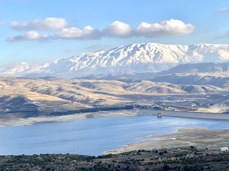 Ага, у нас тут и озера имеются. Не только куча водопадов. Причем, для крохотной страны, площадь которой чуть более 10 000 км2 озер у нас достаточно много. А для страны на "жарком Ближнем Востоке" и подавно. Некоторые из этих озер искусственные. Но это не делает их менее красивыми. Озера используются для полива растений летом (пьем мы не из озер, всетаки, а воду из многочисленных природных родников, однажды я про них отдельно расскажу). Вот это озеро ближе всего к моему дому, километров 30 или 40. Но по горам, по серпантинам. Гора со снежной шапкой это Голанские высоты, то, что соседи южные называют Хермон. На арабском гора называется Джебель Шейх, Гора Старца. Потому что белая "седая" снежная шапка почти до лета иной раз остается. Эта гора оккупированная территория Сирии. А на месте, где сейчас озеро, были найдены следы первобытной культуры, много изделий и инструментов. Озеро называно в честь этой теперь затопленной истории. Караун.
