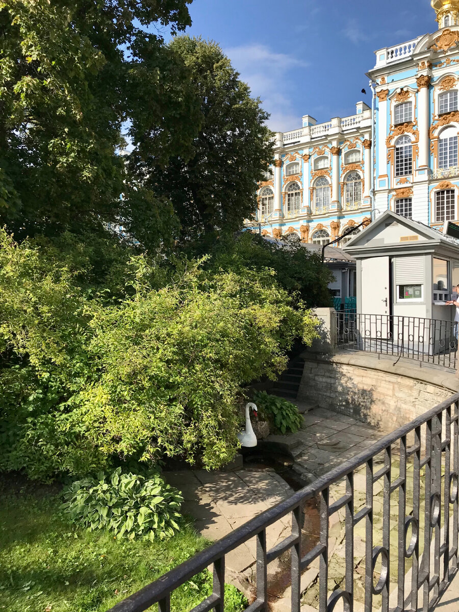 Ведёт она на Камеронову галерею с бронзовыми бюстами, плавно переходящей в Агатовые комнаты и Холодную баню. Зайти сюда можно по отдельным билетам. А вот во Фрейлинский садик попасть сейчас могут все желающие.
