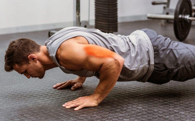 Совет: не отводите лопатки назад и держите плечи прямо на протяжении всего упражнения. При выполнении этого упражнения вполне нормально чувствовать легкую стимуляцию грудной клетки. Однако избегайте разгибания локтей, так как это перенесет напряжение с трицепсов на грудь и плечи.