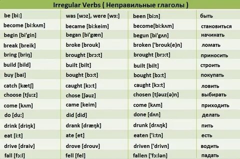 1. Составьте список: начните с того, чтобы составить список всех неправильных глаголов, которые вы хотели бы выучить. Разделите их на группы по изменениями в прошедшем времени и постигайте их постепенно.