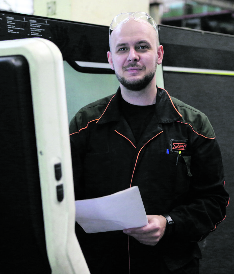 День танкиста отмечают и работники механосборочного производства. Операторы станков изготавливают детали и узлы для боевых машин. Благодаря их напряженному труду конвейер работает без остановки. О преимуществах своей профессии нам рассказал оператор станков с ПУ механосборочного цеха № 4 Вячеслав Пылаев. – Как вы стали станочником? – По диплому у меня специальность «Информационные технологии». Я окончил машиностроительный техникум. Затем прошел переобучение в Центре подготовки персонала, получил профессии токаря-универсала и оператора станков с ПУ. Вот уже пять лет я работаю оператором. – Что входит в ваши обязанности? – Выполнение деталей по техпроцессу, обслуживание станков, наладка и написание программ, когда требуется. – Какие преимущества у вашей профессии? – Лично для меня это интерес и разнообразие. Оператор должен поймать определенный допуск детали, соблюсти соосность и так далее. – Приятно, когда получается? – Сто процентов. Я бы не был оператором пять лет, если бы не получал