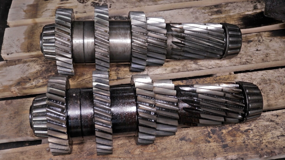 А теперь наглядный пример того, как выглядят валы коробок передач, одна из которых обслуживалась с применением качественного (вал сверху) и поддельного (вал снизу) трансмиссионного масла.