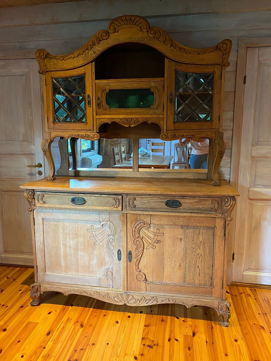 Не перестаю удивляться любви норвежцев к разному хламу разным старинным вещам и мебели. Периодически захожу на сайт, где они продают или вовсе отдают безвозмездно- то есть даром предметы быта и мебель. Я конечно повидала много разных вещиц, но такой уникальный шкаф в дар встретишь не каждый день. Он из дуба: Вот как выглядит объявление /перевод/ Немного грустно, но это будет выброшено после 08 октября! Красивая старая витрина / передний шкаф / буфет из массива дуба отдается бесплатно. Зеркала появились совсем недавно. Шкаф очень просторный, он состоит из двух частей и сейчас находится в разобранном виде. Нижняя часть 58 см, а верхняя 125 см. Ключей от дверей или ящиков нет. Левая дверца в нижнем шкафу уже давно чем-то обработана, но не знаю, чем и как. Лично мне этот шкаф очень понравился. Надеюсь он найдет своего хозяина который приведет его в порядок. Шкаф-буфет явно требует реставрации. К нему прилагается небольшой пристенный столик. Как вам такая мебель? Приютили бы такой шкаф