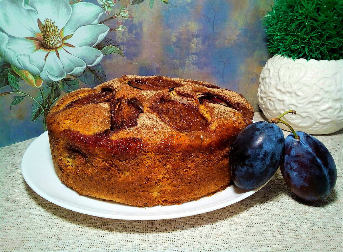 Р.S. я еще добавляю несколько долек слив в середину пирога, т.е. сначала выкладываю половину теста, на него несколько долек слив, на сливы вторую часть теста и на верх половинки слив,посыпав их сахаром и корицей. Уго