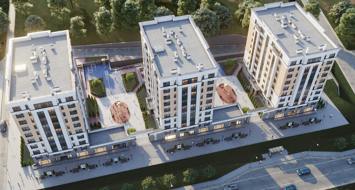 Согласно официальному сайту «Интерстроя», целая команда архитекторов, проектировщиков и дизайнеров работала над созданием трех уникальных десятиэтажных клубных домов «Континенталь» с подземным паркингом в районе Парка Победы.