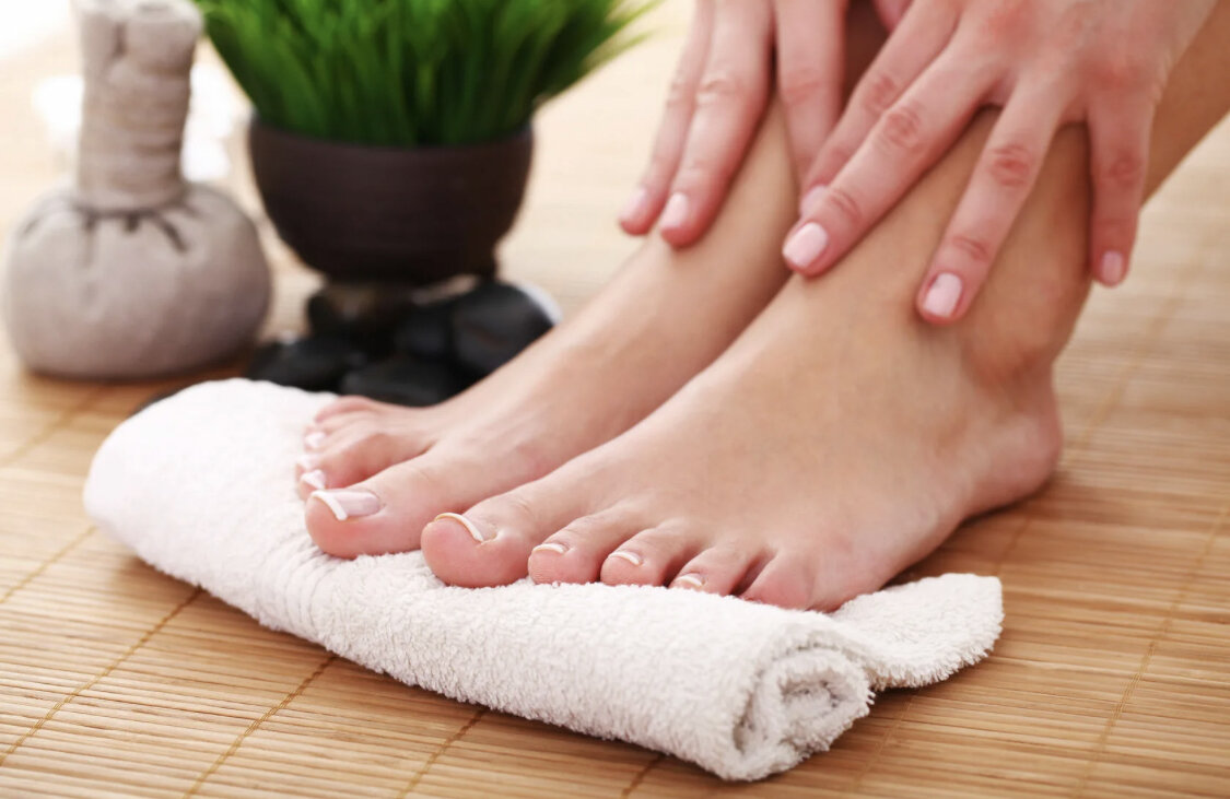 Лицо омолаживаем, спину расслабляем, от целлюлита и усталости на ногах избавляемся: растираем ноги полотенцем