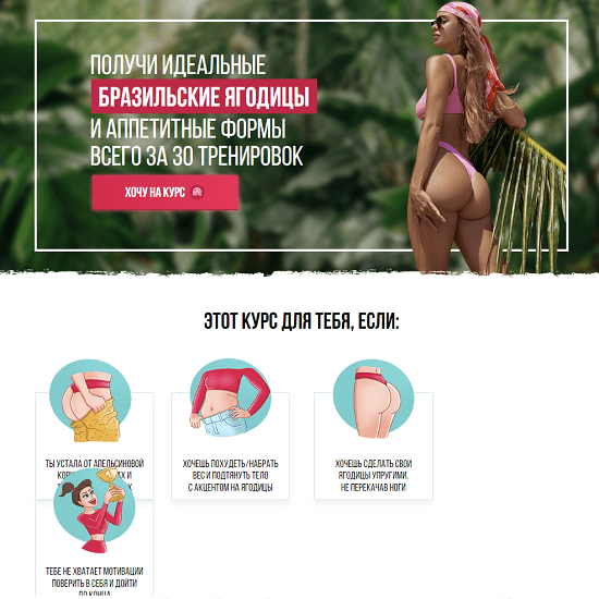 Что ты получишь: 3 вида программы : в зале / дома / с резинками Тренировки по 30 минут в день в режиме «включай и повторяй» Сет упражнений в Каждой тренировке Озвучка тренером + инфографика на видео особенностей техники упражнений 2 вида меню на 4 недели Попробовав которое, ты разлюбишь картошку фри из McDака Тариф Базовый оптимальный: Данный курс вы можете купить у нас на сайте за 1.150 рублей Или можете написать нам в телеграм и купить напрямую: НАПИСАТЬ В ТГ