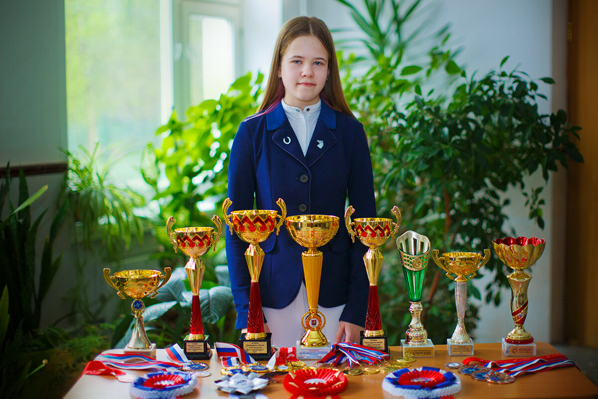 🎤 Здравствуй! Очень рады встрече. Медали и кубки заняли весь стол! Скажи, как ты пришла в спорт, которым так серьёзно теперь занимаешься?