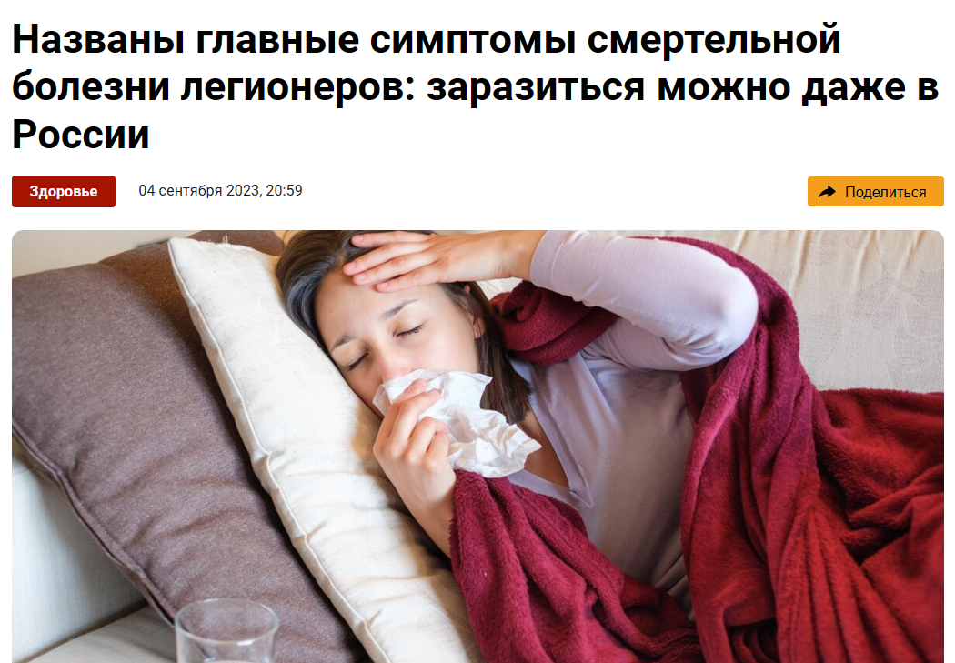 Разбираем фейки. Ищем правду за вас. Подписывайтесь! Несколько недель назад в западных медиа затрубили об эпидемии легионеллеза, который еще известен как болезнь легионеров. Так, в Польше от этого недуга, который передается воздушно-капельным путем, скончались 19 человек, а еще 163 слегли в больницу. Предположительно, источником заражения стала система водоснабжения. Однако в СМИ напугали, что инфекцию можно получить даже через воздух в кондиционере. Но есть ли причины опасаться этого заболевания у россиян, ведь в громких заголовках прессы пугают смертельным исходом? Возбудители легионеллеза — бактерии из рода Legionella — обитают и размножаются в теплой пресной воде при температуре от 20 до 50 °C, оптимальный показатель — 35 °C. И п