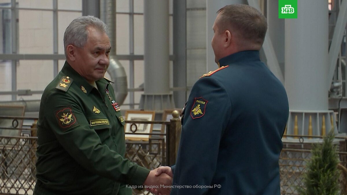 [ Смотреть видео на сайте НТВ ] Министр обороны РФ Сергей Шойгу вручил медали «Золотая Звезда» троим военнослужащим — Героям России, совершившим подвиги в ходе спецоперации на Украине. Сергей Шойгу: «Я от души поздравляю вас с этими высокими наградами — высочайшая оценка вашего ратного труда. Уверен, что вы и дальше будете верой и правдой служить нашей стране, нашему делу. Ну и, естественно, пожелание, чтобы все были живы, здоровы, а главное — выполнили задачу». Как сообщили в Минобороны, указом президента звания Героя России удостоены командир мотострелковой бригады Сергей Наймушин, командир огнеметной роты РХБЗ Владислав Журавлёв и командир мотострелкового взвода Алексей Кривуля. Все получившие медали проявили мужество и героизм при выполнении задач спецоперации, отметили в министерстве. [ Смотреть видео на сайте НТВ ]