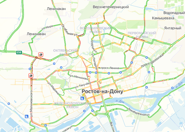 К 17:20 проезд затруднен в центре города. Со скоростью 5-10 километров в час автомобили едут на улицах Красноармейской, Большой Садовой, проспектах Буденновском, Ворошиловском, Соколова.