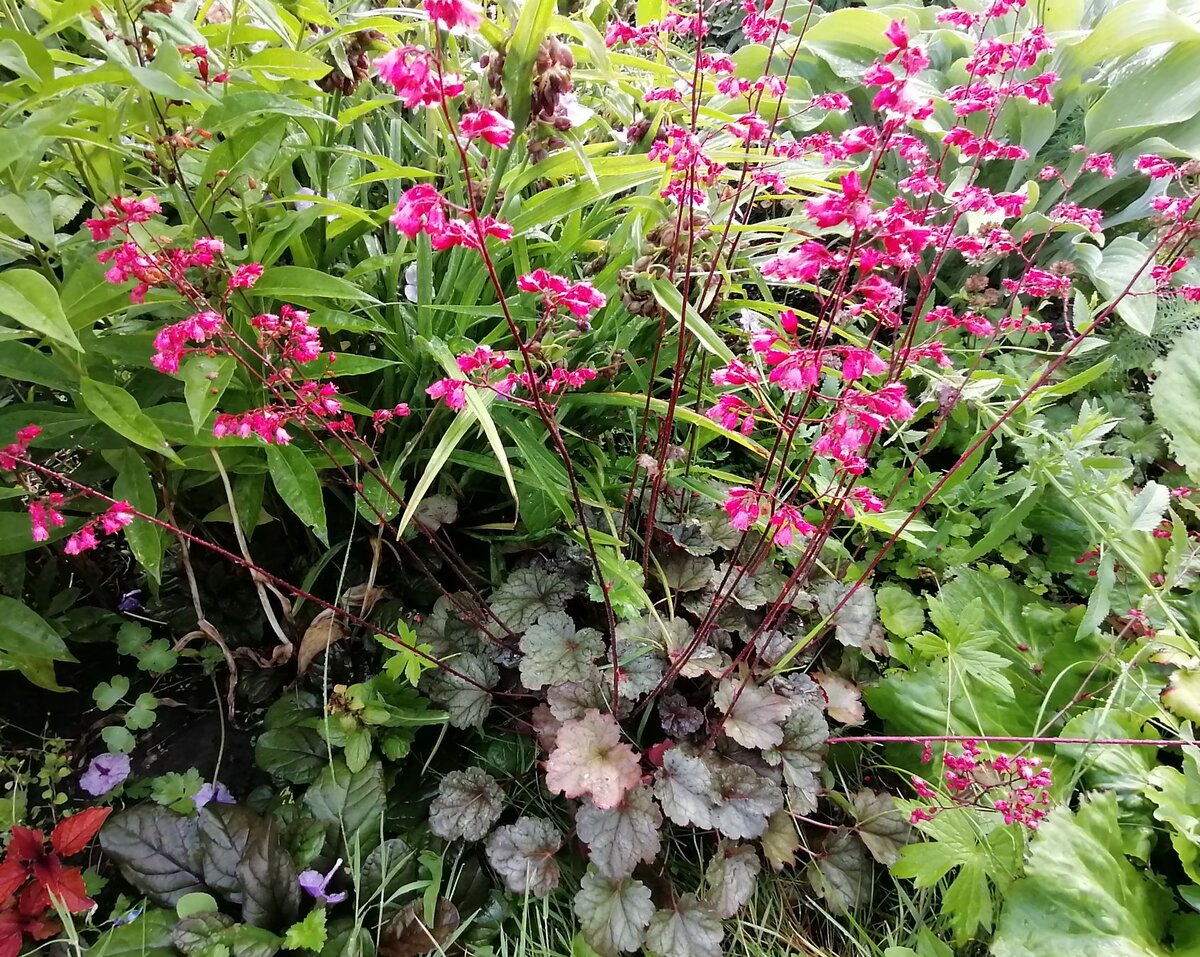 Уже давно стала популярной и любимой в наших садах гейхера, многолетнее растение, покорившее садоводов необыкновенным разнообразием расцветки листьев. Познакомимся с некоторыми разновидностями гейхеры и с особенностями ее выращивания. Гейхера кроваво-красная. Другое название - колокольчик красный. Своими скромными листьями лишь оттеняет красоту других растений, ценят её за алые миниатюрные цветки-колокольчики. Низкорослое (60 см) многолетнее растение с зимующими розеточными листьями и красными или красно-розовыми изящными цветками, собранными в соцветия на длинных цветоносах. Цветёт в июне - июле. Размножается семенами и делением куста. Ей нравятся сухие, легкие, питательные, хорошо дренированные почвы, она умеренно полутеневынослива, морозоустойчива. Гейхера мелкоцветковая. Интересна своей необычной листвой, напоминающей листья клёна: зимние листья почти округлые, а летние – лопастные. В природе встречаются отдельные экземпляры этой гейхеры с пурпурным оттенком листвы. Морозостойка и